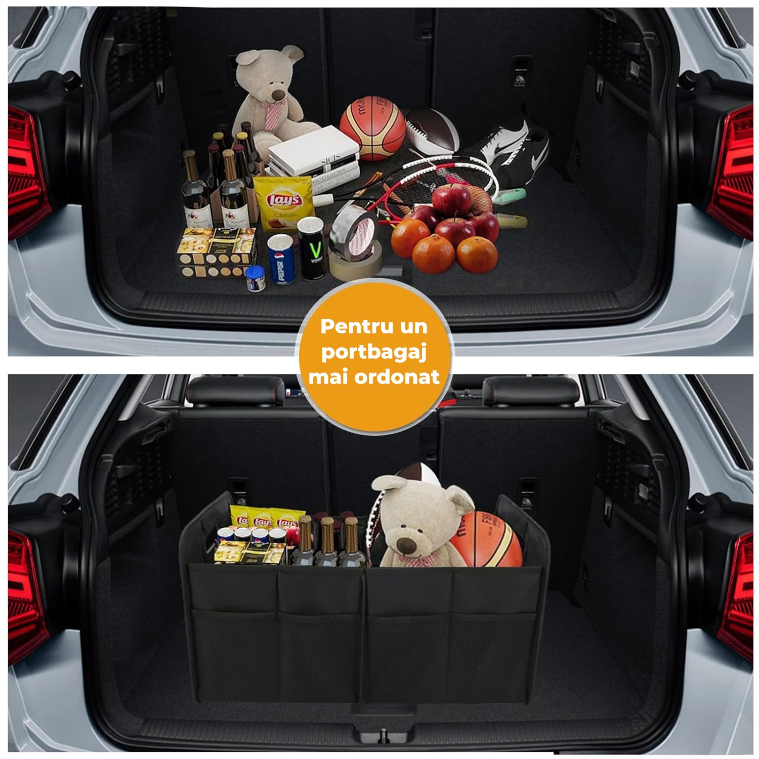 Pastreaza masina curata si ordonata: Cu dimensiuni extinse de 55 x 33 x 30 cm, acest organizator te ajuta sa pastrezi toate obiectele intr-un loc sigur, prevenind dezordinea si riscul ca acestea sa se rastoarne sau sa se miste in timpul calatoriilor.