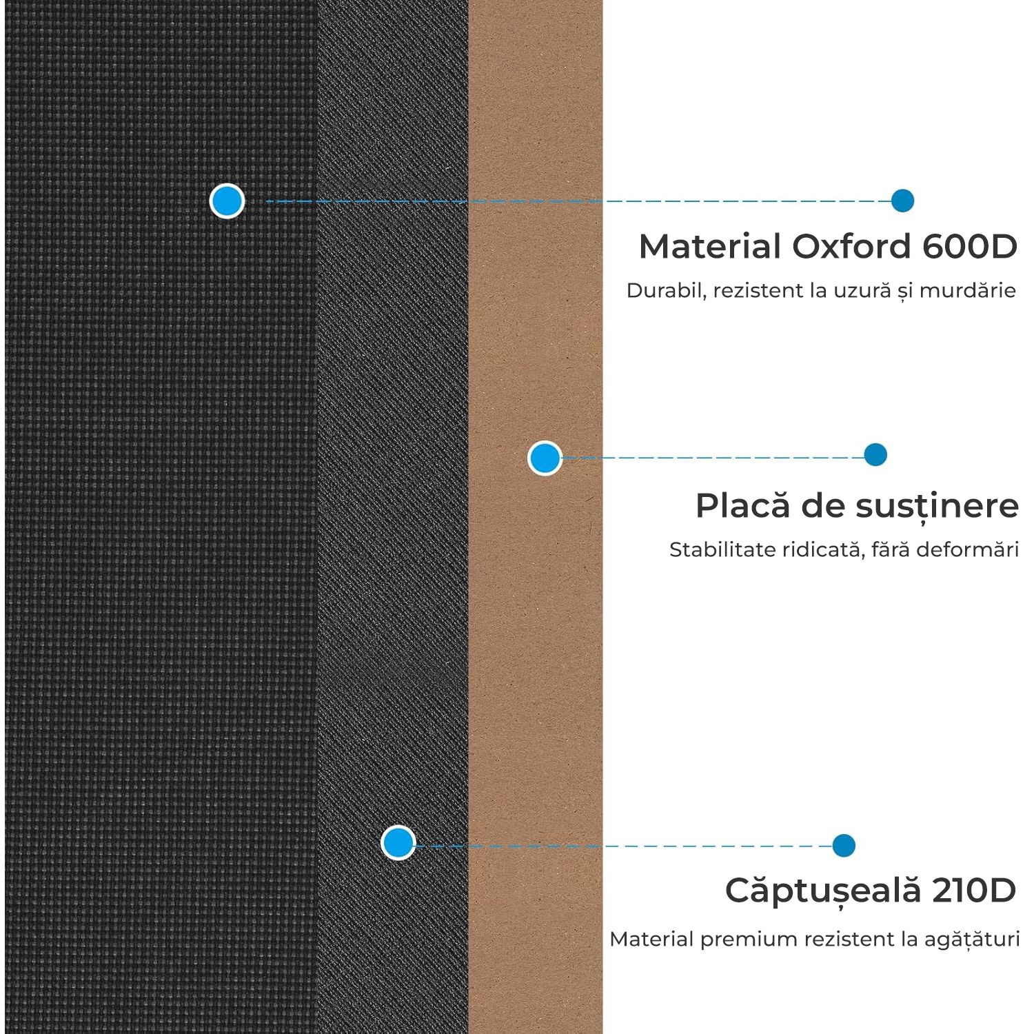 Material rezistent si durabil: Fabricat din poliester Oxford 600D impermeabil, acest organizator este extrem de rezistent la uzura si murdarie. Cusaturile intarite asigura o durabilitate pe termen lung, iar curatarea este rapida – doar cu un spray si o laveta umeda.