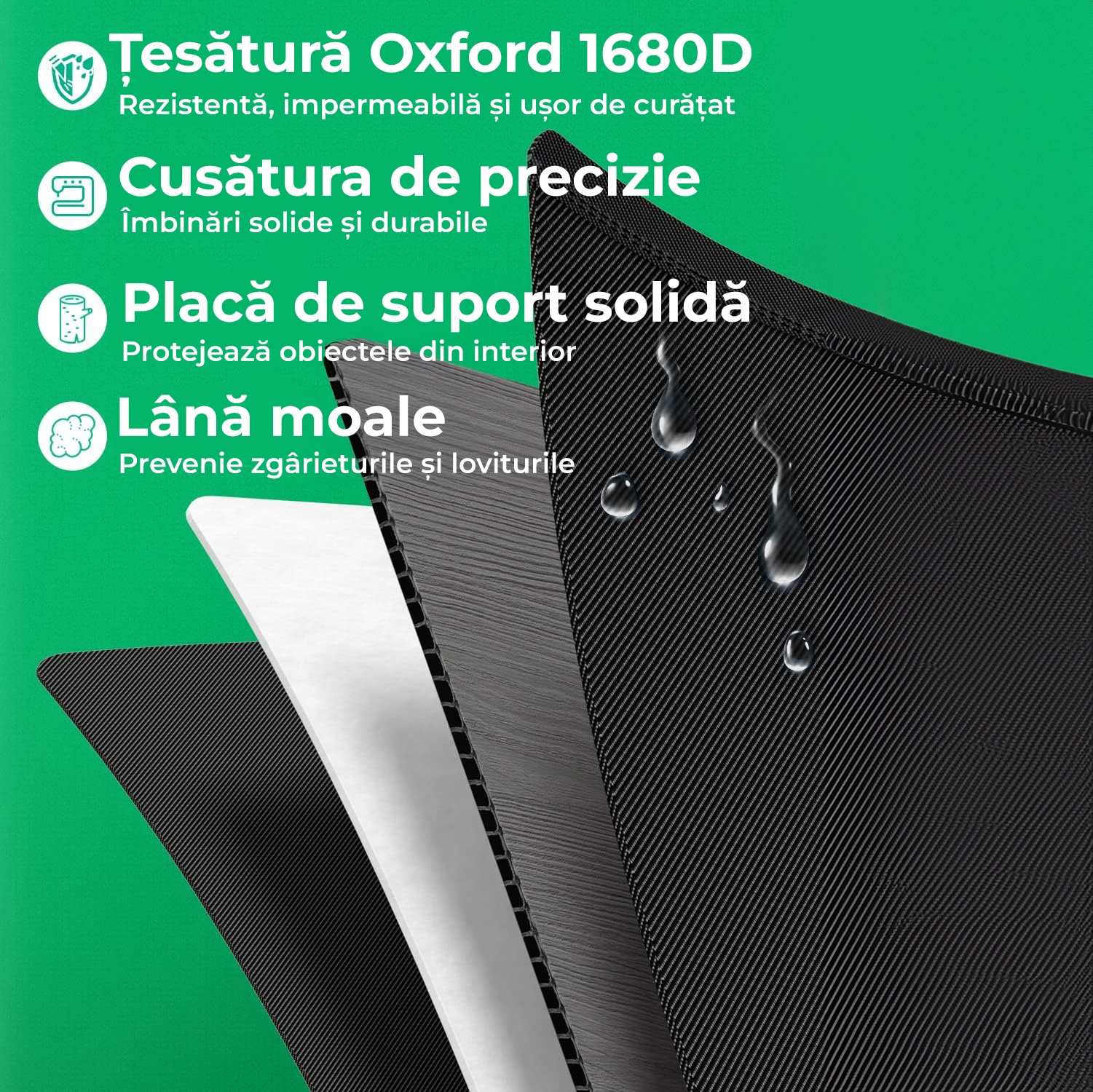 Materiale de calitate superioara – Fabricat din tesatura Oxford 1680D, impermeabila si rezistenta la abraziune, acest organizator va rezista la orice provocare. Usor de curatat, nu va retine mirosurile neplacute.