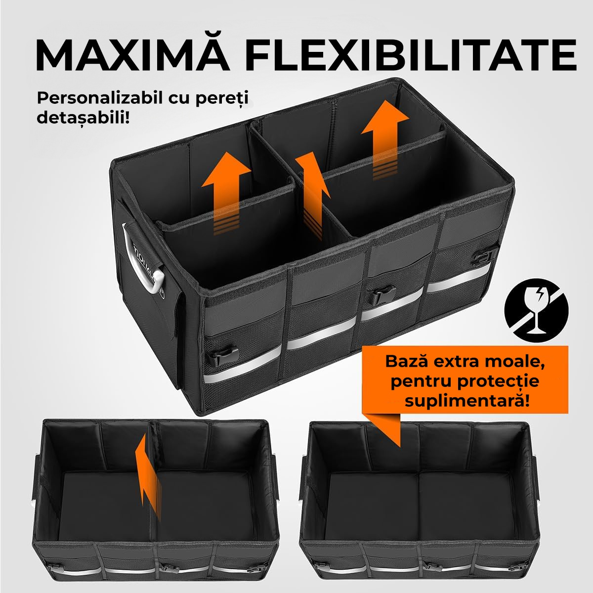 Descopera confortul si versatilitatea oferita de acest organizator premium pentru portbagaj!