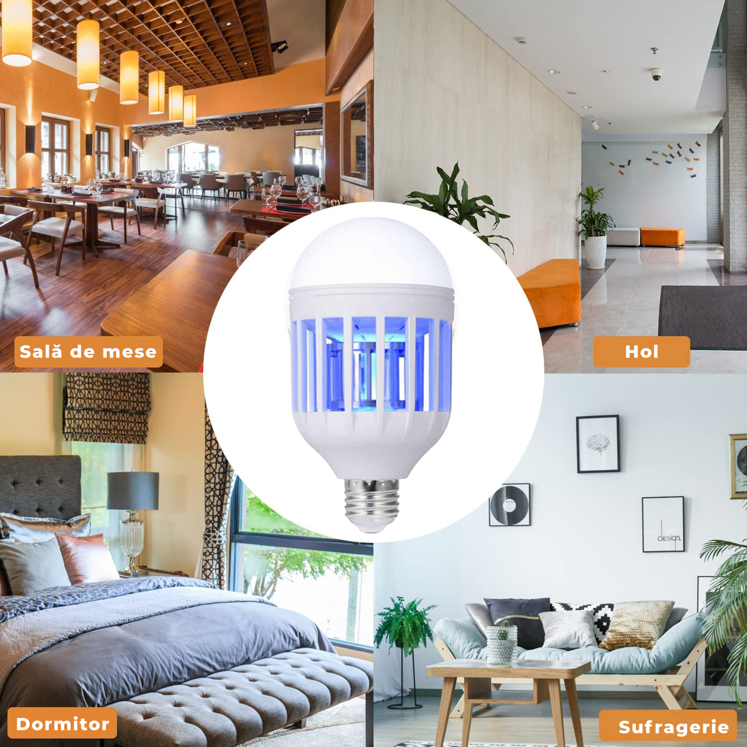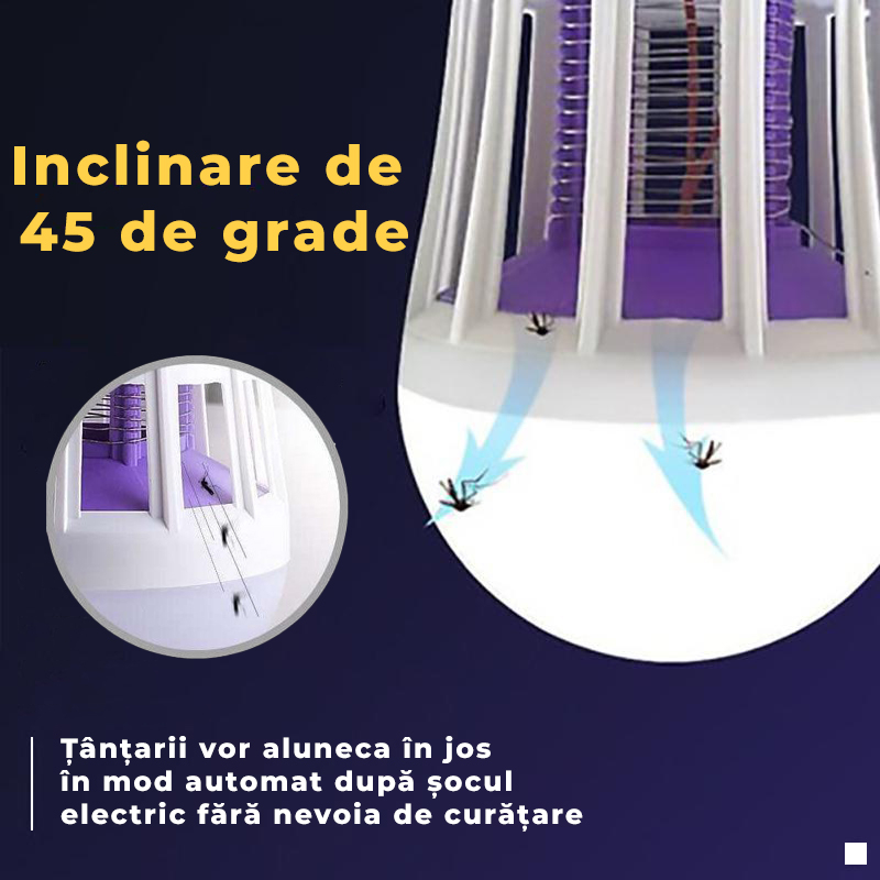 In plus, este sigura si nu prezinta niciun pericol pentru copii sau animalele de companie. Acest aparat anti insecte a fost creat cu tehnologii de siguranta si nu prezinta niciun risc de soc electric sau alte probleme de securitate. Poti utiliza aceasta lampa fara a te ingrijora de siguranta familiei tale sau a animalelor de companie.