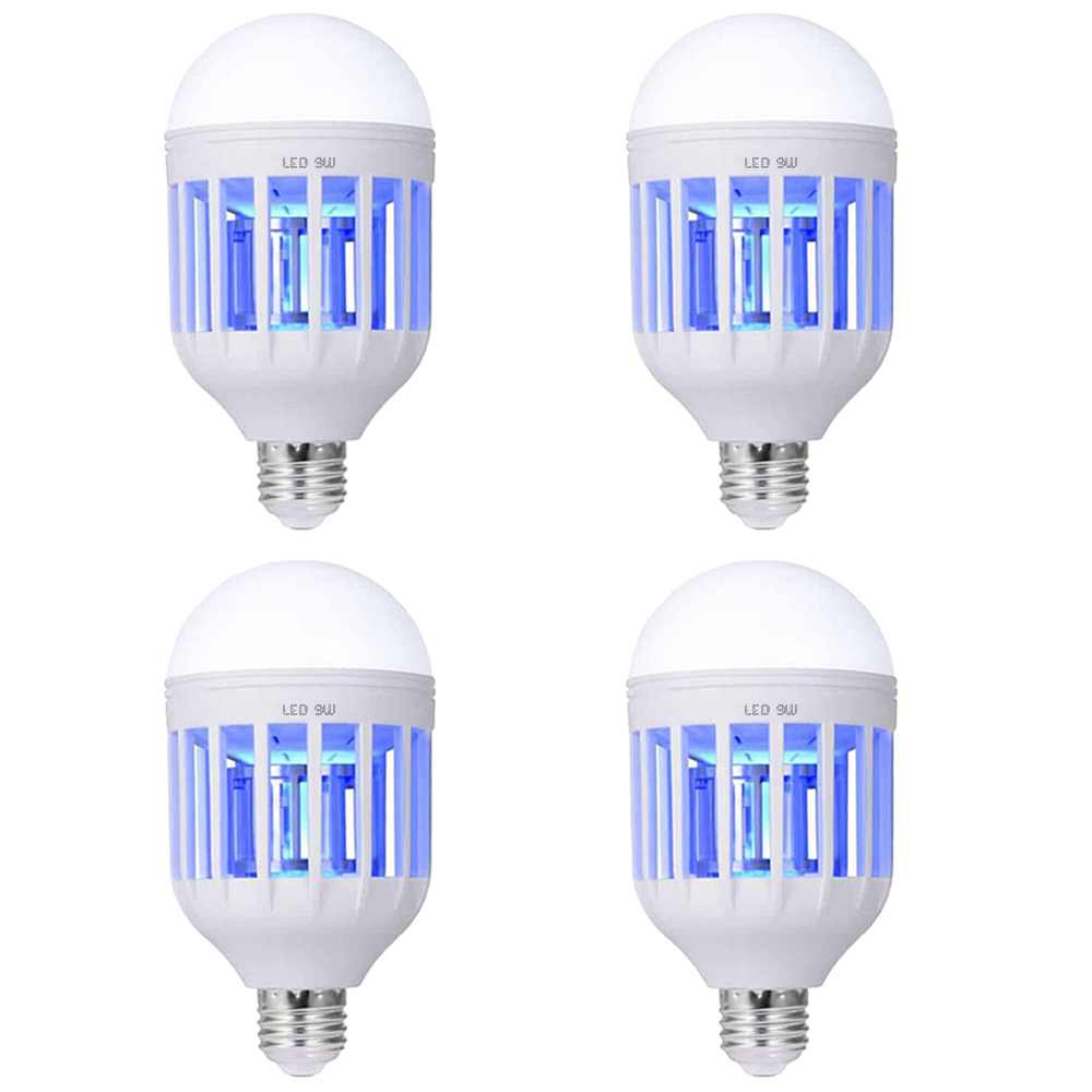 Set 4 becuri LED 2 in 1 cu lampa UV anti insecte Echo Soul, aparat anti tantari, muste, musculite, silentioasa, impotriva insectelor, cu radiatie 360° pentru interior sau exterior, 9 W, Alb