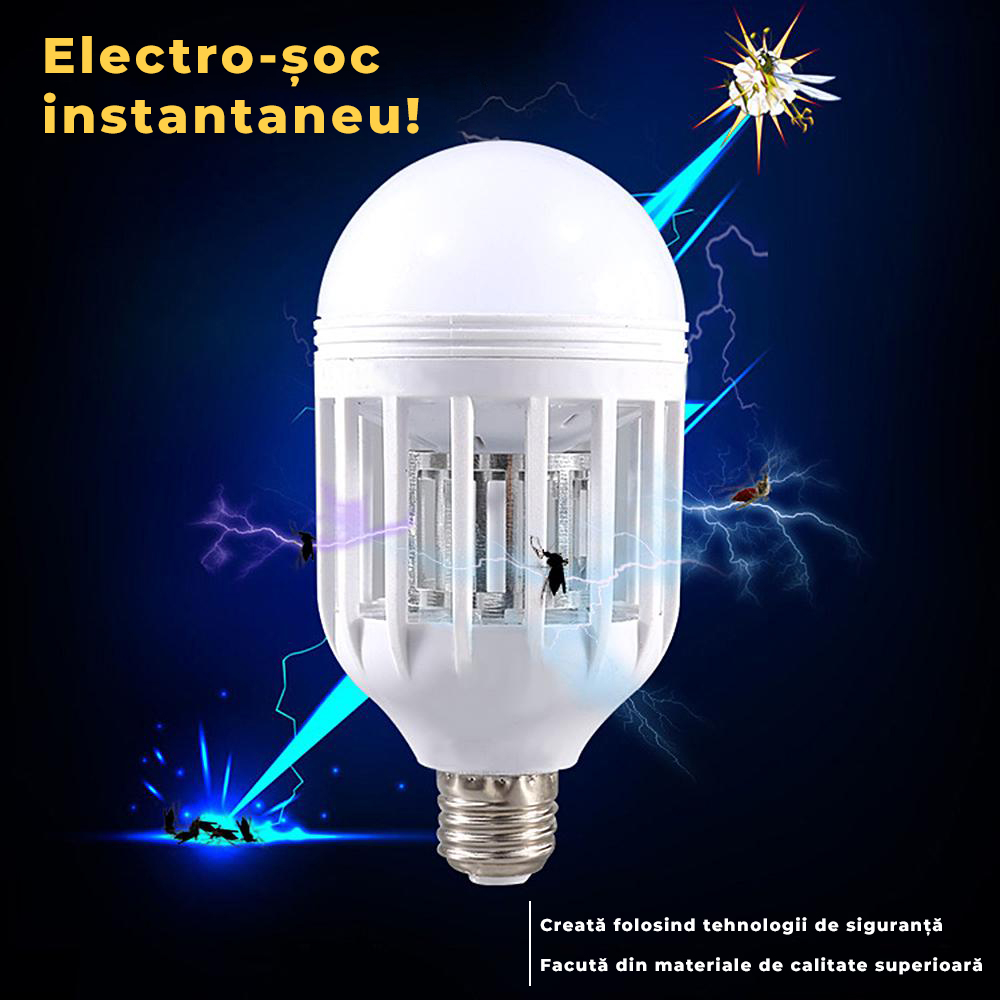 In plus, este sigura si nu prezinta niciun pericol pentru copii sau animalele de companie. Acest aparat anti insecte a fost creat cu tehnologii de siguranta si nu prezinta niciun risc de soc electric sau alte probleme de securitate. Poti utiliza aceasta lampa fara a te ingrijora de siguranta familiei tale sau a animalelor de companie.