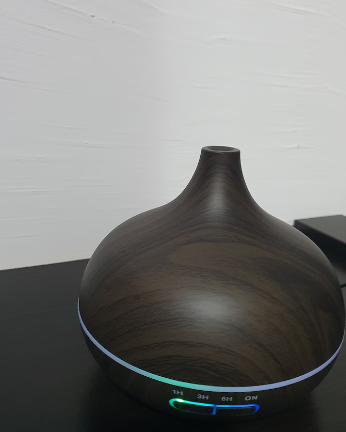 Umidificatorul are un design modern, cu aspect de lemn, culori diferite de lumina LED, este foarte silentios
