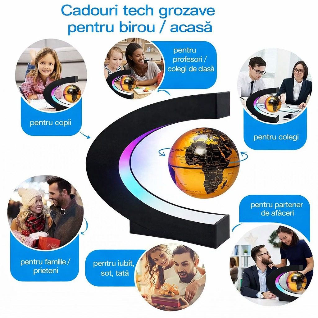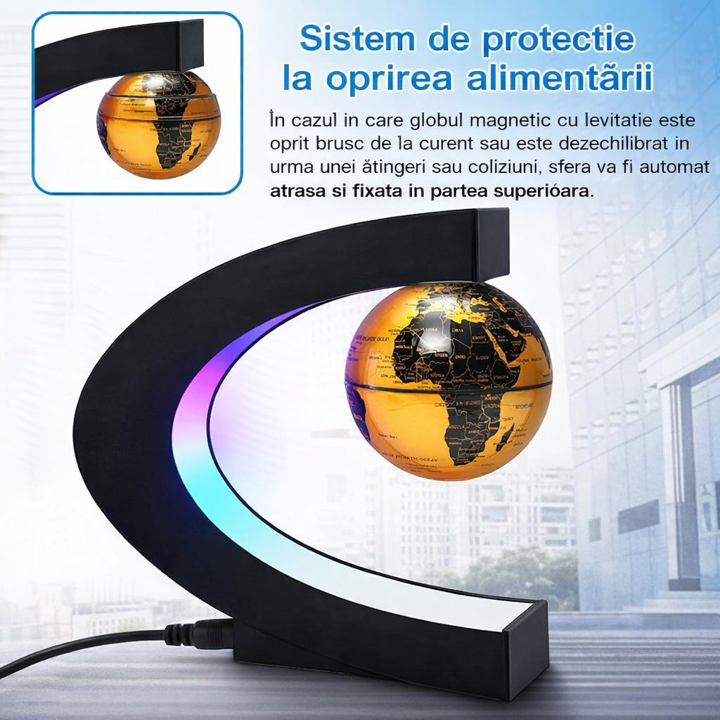 Glob pamantesc magnetic plutitor Echo Soul – un element de decor modern si spectaculos pentru birou si acasa. Datorita tehnologiei de levitatie magnetica, globul pluteste in aer si se roteste liber, oferind un efect vizual impresionant.