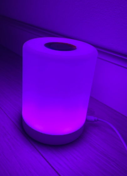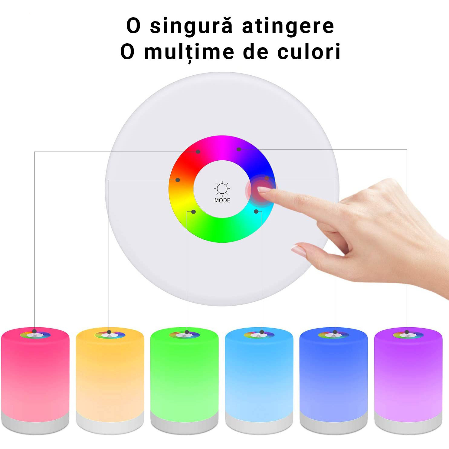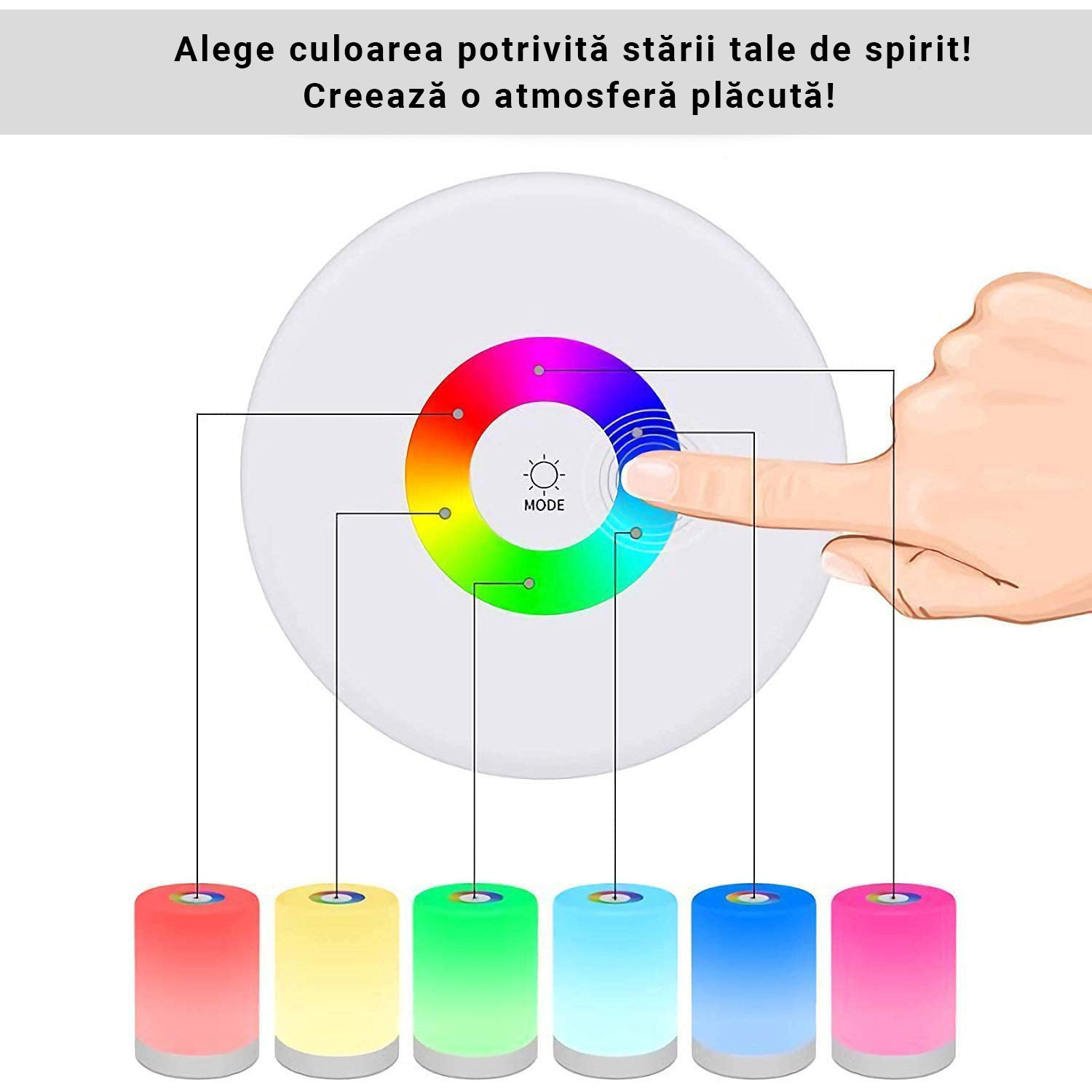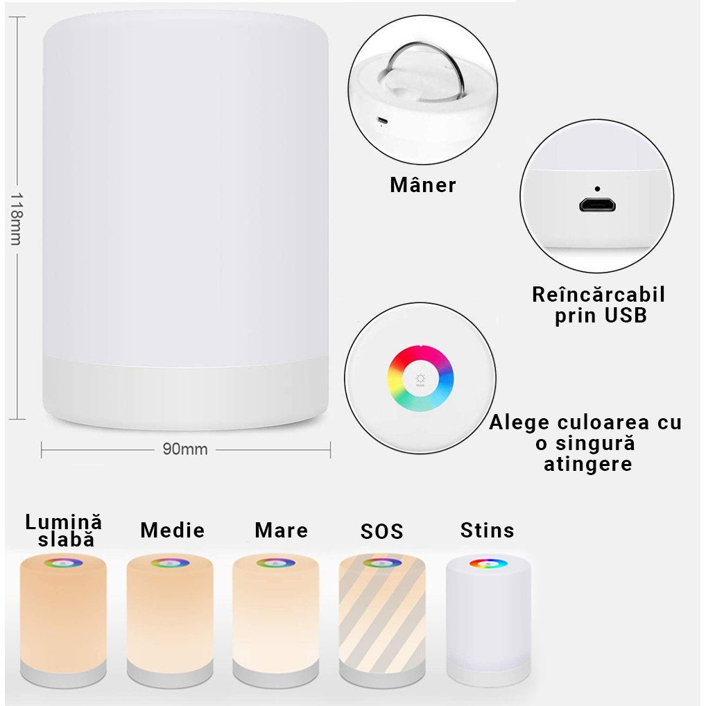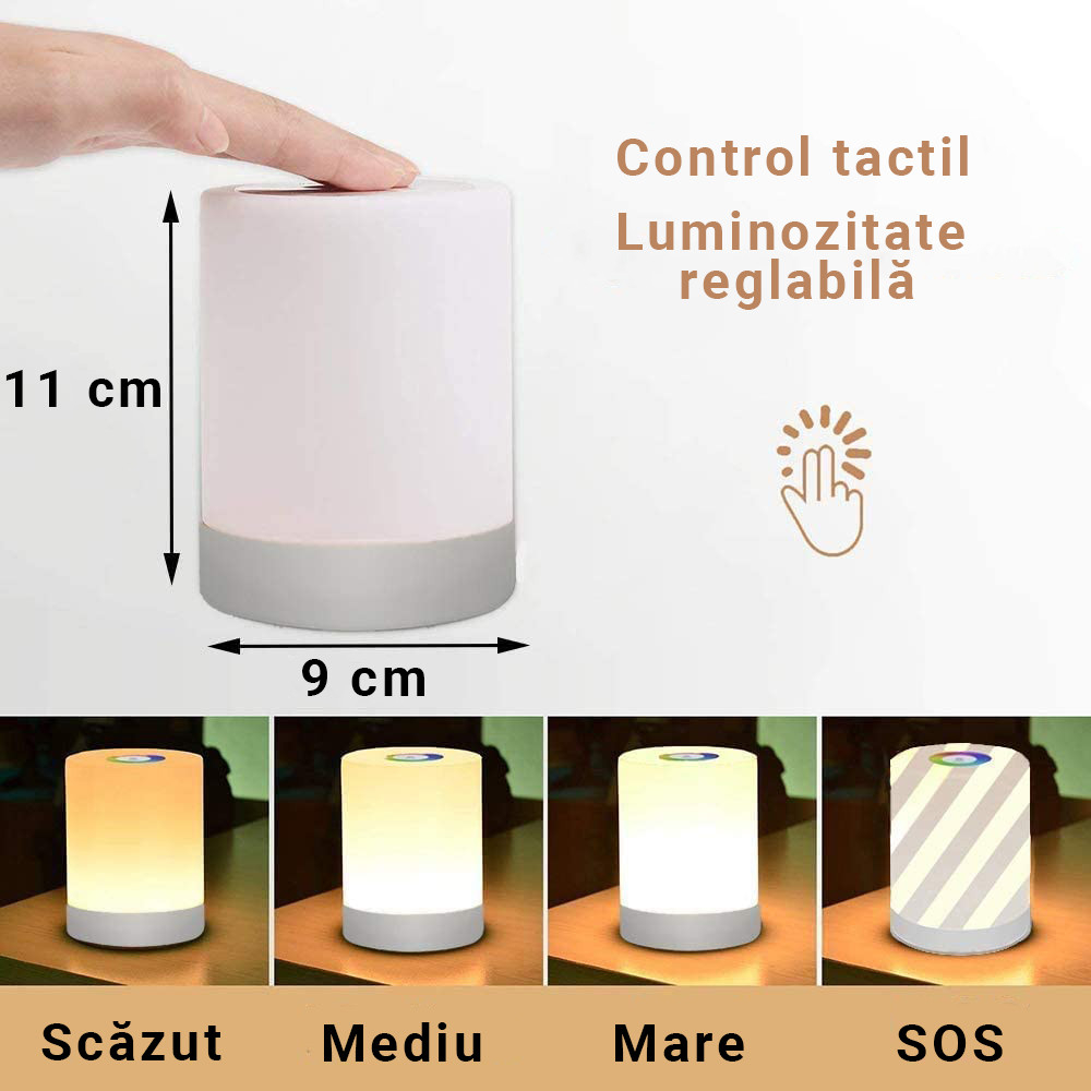 Lampa de veghe cu un design modern, usoara, cu panoul tactil la 360 grade, senzor si lumina de noapte cu LED.