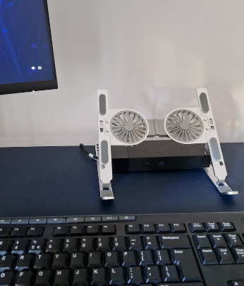E un suport foarte bun. Elementele de sprijin se misca bine, nu sunt libere asa cum aveam la cealalta varianta fara ventilator. E mai bine inchegat si foarte comod, chiar si ventilatoarele sunt bune, dar nu va asteptati sa nu auziti niciun sunet (sunt totusi ventilatoare), dar zgomotul e ok, nu deranjeaza. Se poate opri cand nu mai e nevoie de ele (au doua trepte de viteza).