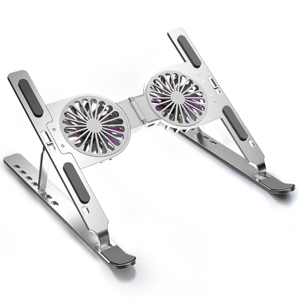 Suport pentru laptop Echo Soul®, ergonomic, portabil, pliabil, detasabil, cu sistem dublu de ventilatie prin cooler, compatibil cu laptopuri de la 10 - 15.6 inch, Argintiu Deschis