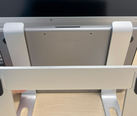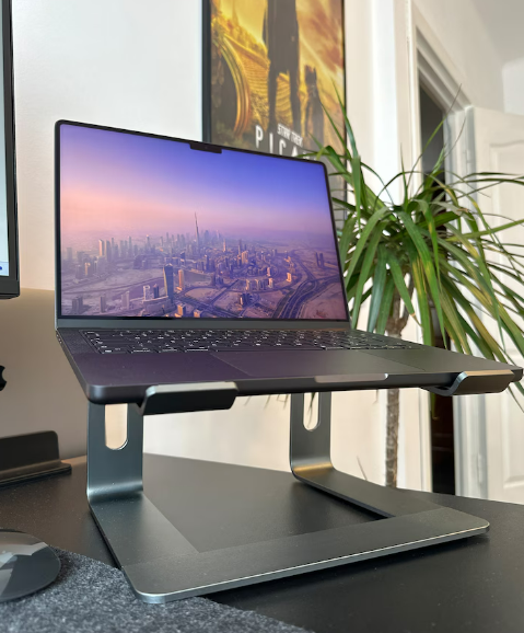 Pozitionarea laptopului pe un astfel de suport, va ridica laptopul de pe suprafata plana a biroului,