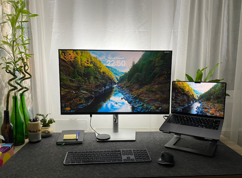 va puteti pozitiona tastatura si mouse-ul deoparte sub laptop. Astfel biroul va arata mult mai curat si organizat.